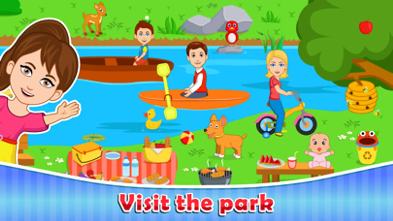 Tap on everything and see what happens, including birds, dogs, cats, sprinklers, ice cream machine and more. Download this app today and see your child explore and play in this open ended game no rules or guides just fun pretend play. Created especially for young minds to explore and play in an interactive playground for little kids.