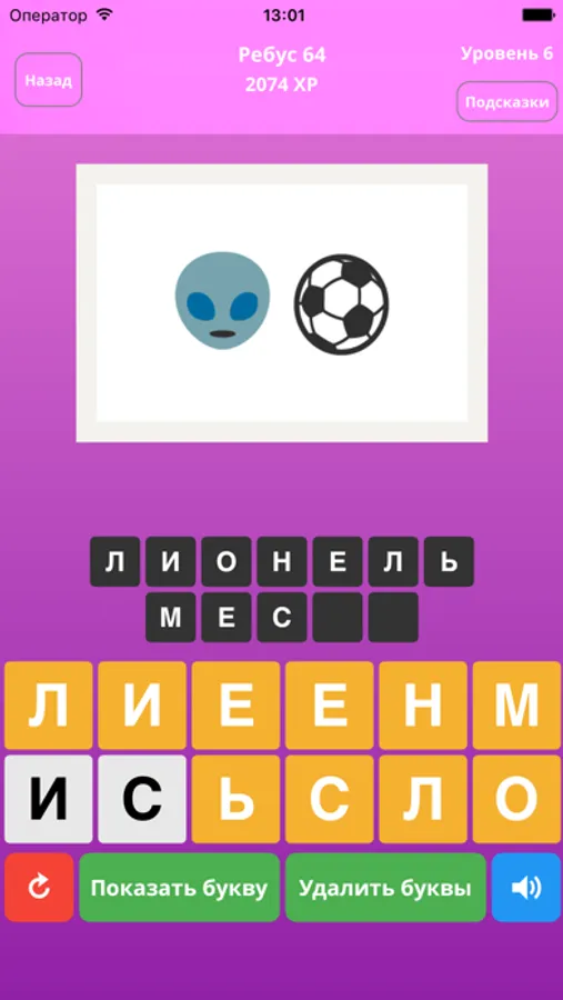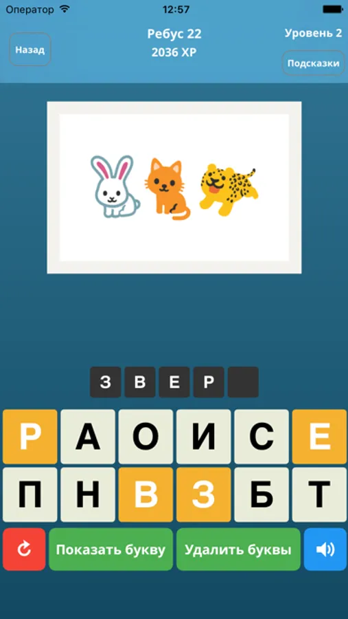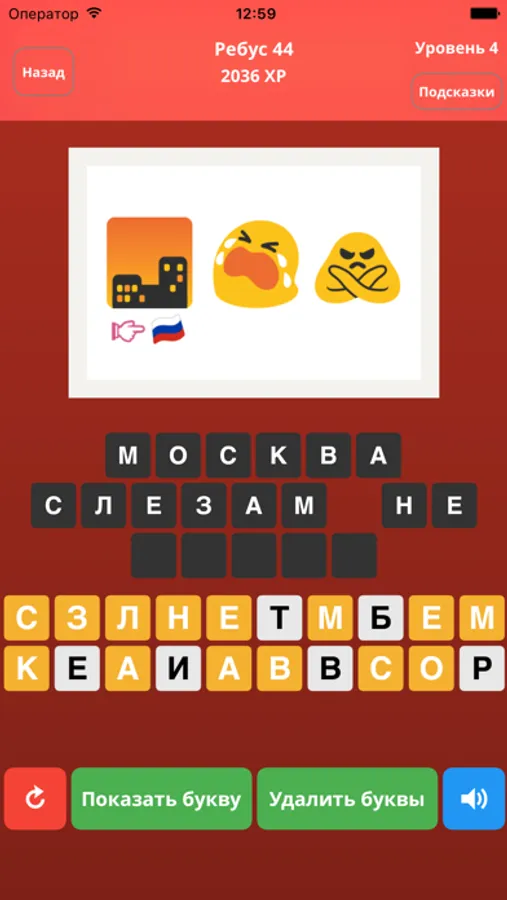 Это игра где вы должны разгадывать ребусы и составлять слова. Сколько ребусов Вы разгадаете? Просто угадай слово! На протяжении всей игры вам будет бесплатно представлено множество различных сборников уровней, каждый из которых содержит множество ребусов. Игра также подойдет детям, обучение в форме игры позволяет развивать абстрактное и логическое мышление - это очень эффективным способ развить логическое мышление в форме игры.