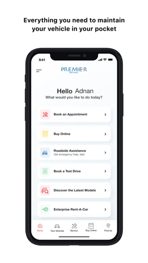 Your car profile is where you can view your car information, warranty, and service details at a glance. Just log in to the app using a mobile number registered with Premier Motors and your car details will be fetched automatically.
