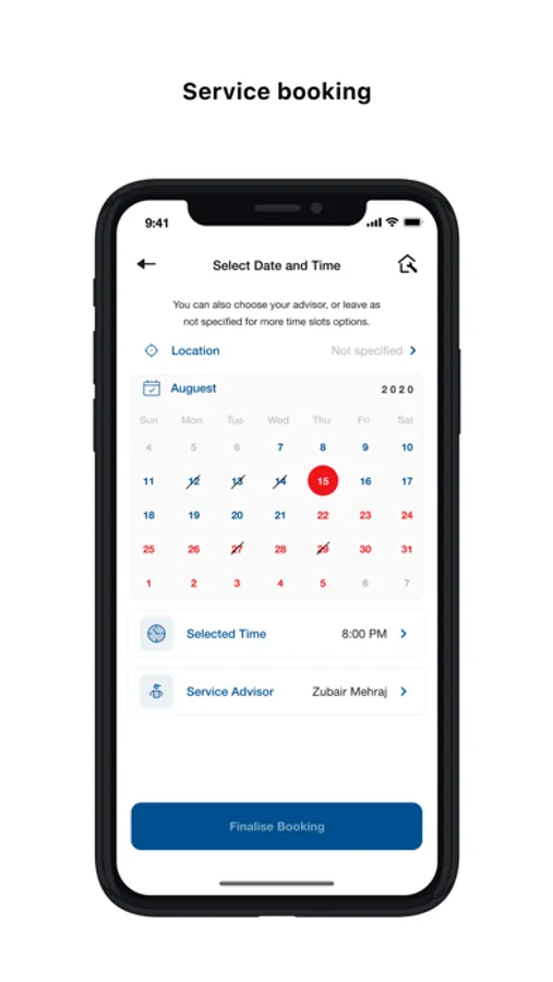Easily book a service by selecting a suitable date, time, and preferred location.