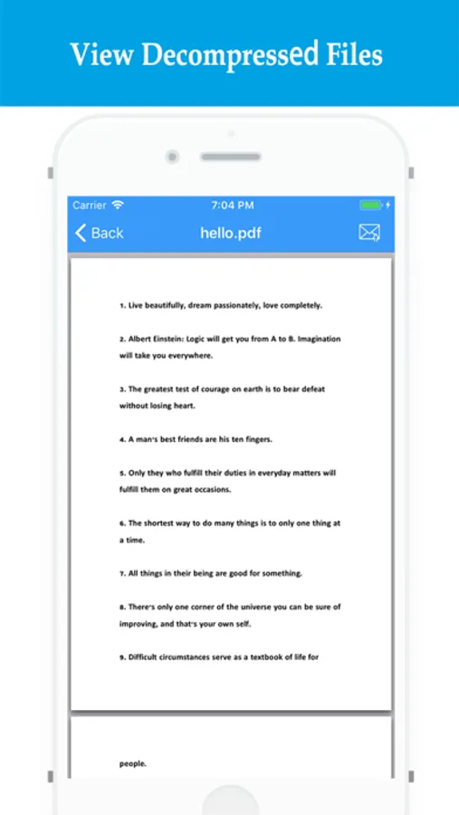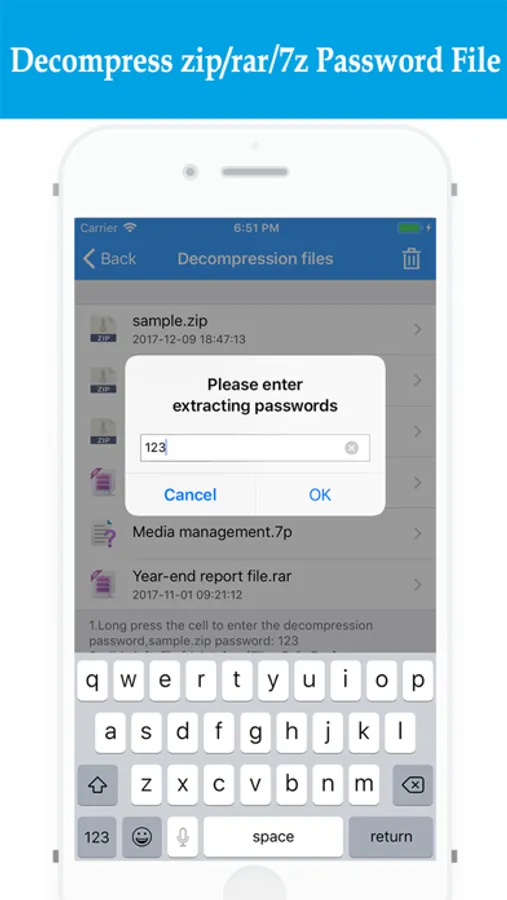 Local Decompress: Import zip/rar/7z file from mobile mailbox or other APP, upload zip/rar/7z file files from the computer, then decompress the file.