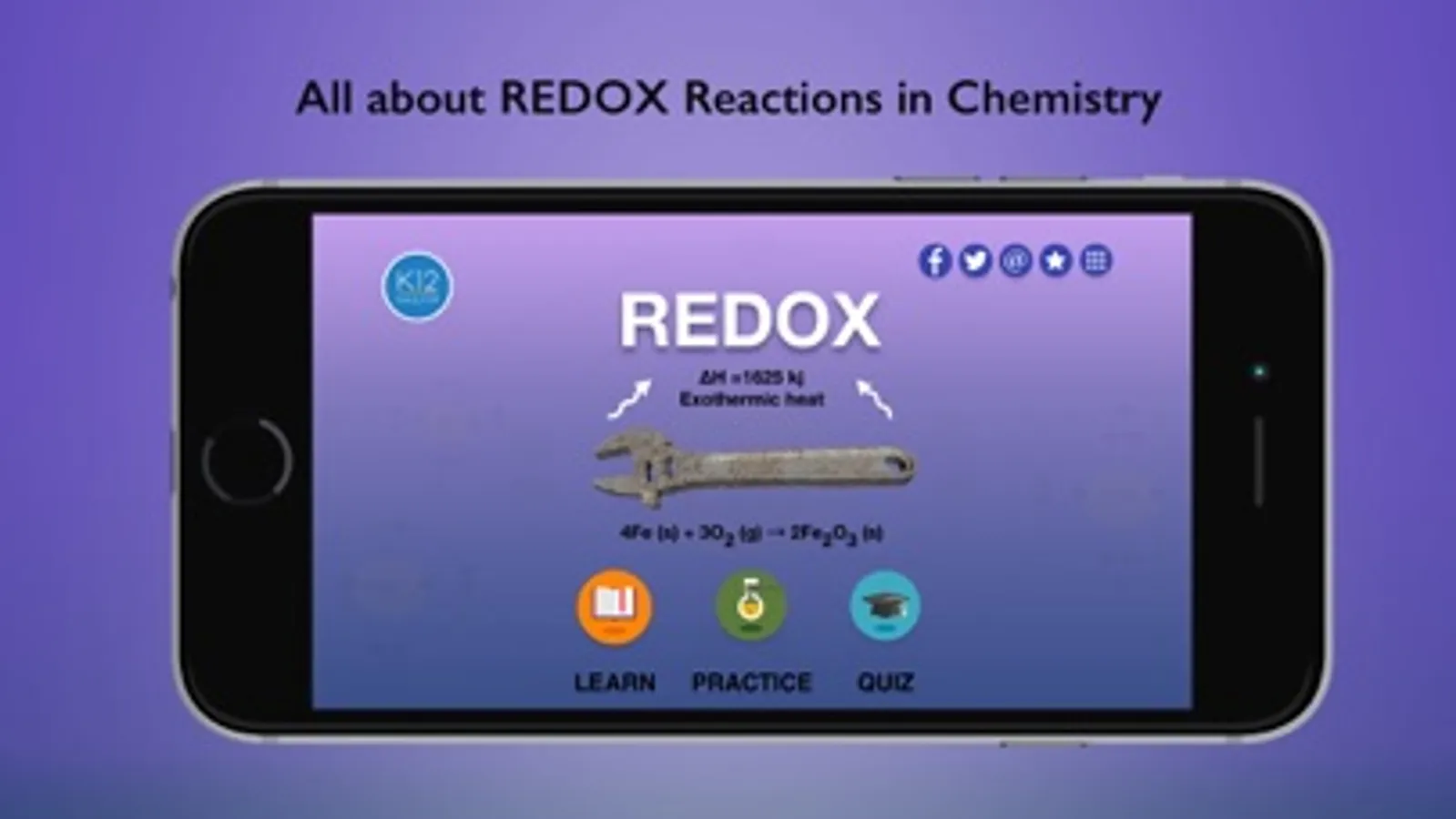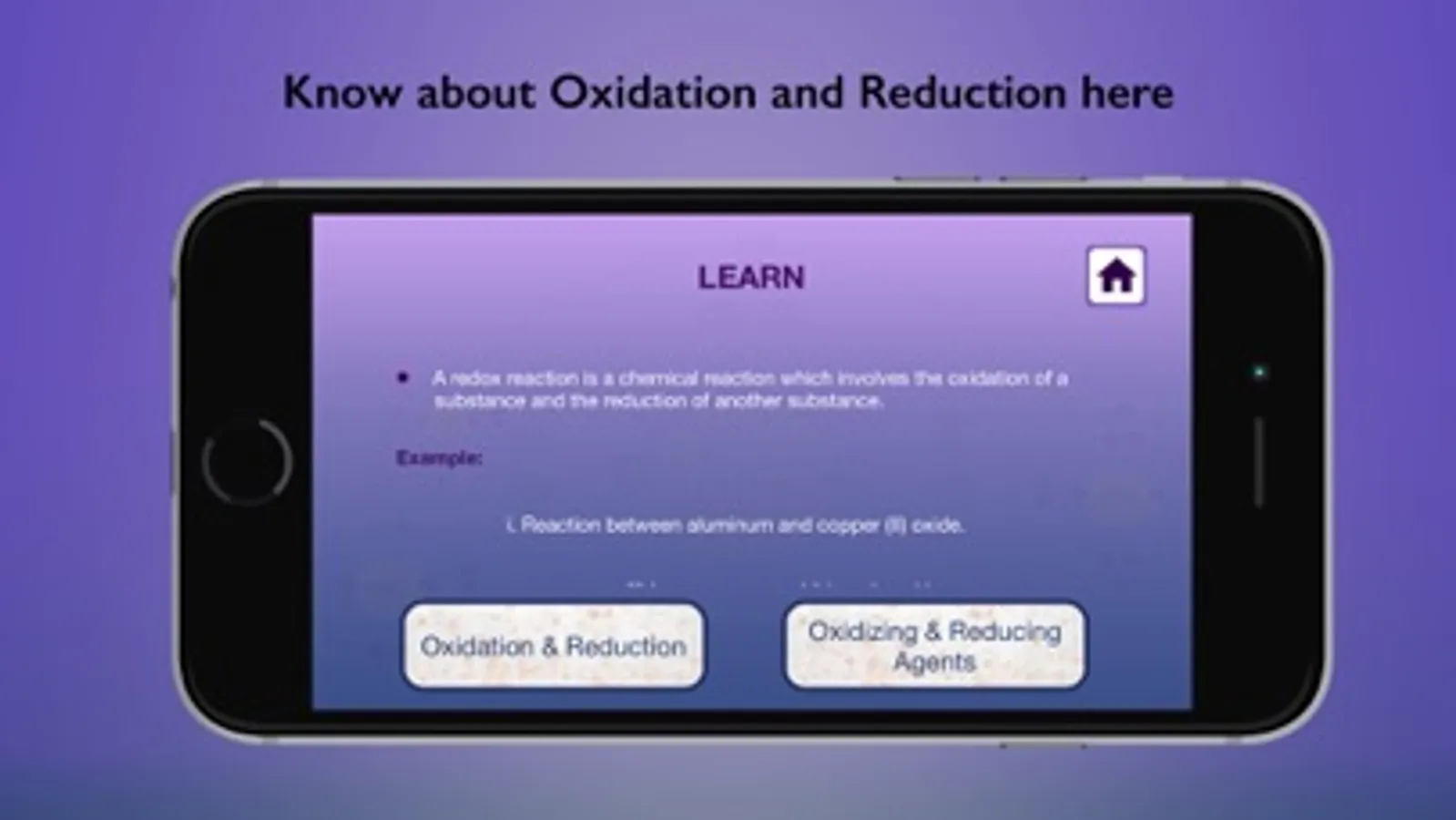 This educational application helps students understand and learn about the redox reaction chemistry, oxidation reduction reactions, redox process, balancing redox reactions in an easy and engrossing way.
