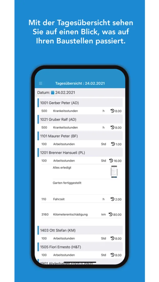 Der klassische mobile Tagesrapport von SORBA kann mit der Baustellenzeiterfassung ergänzt