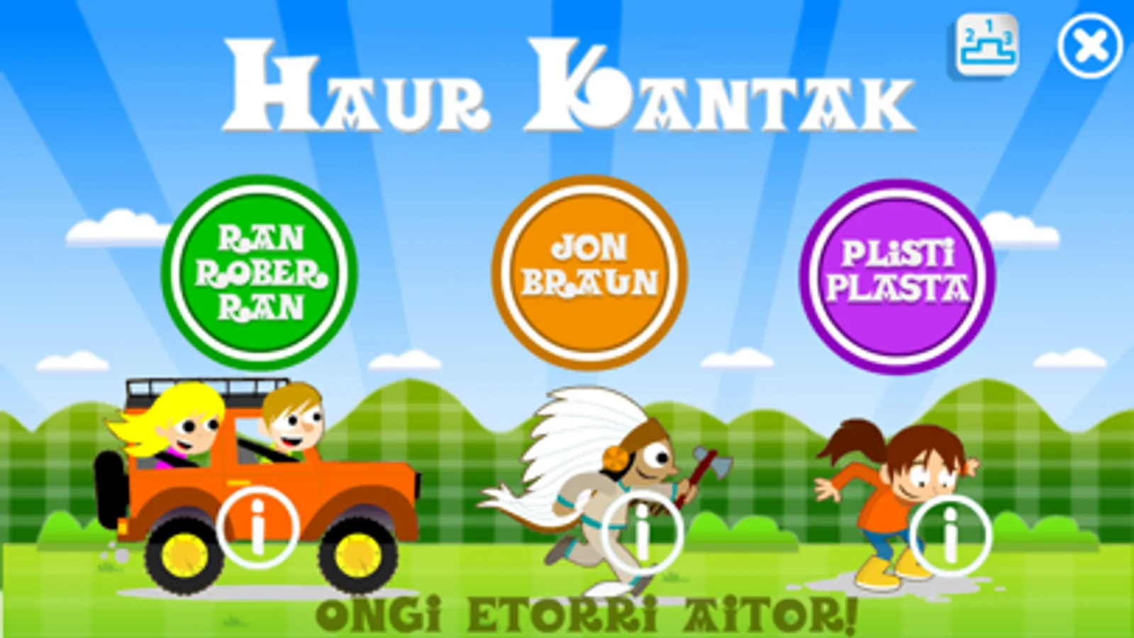 Hezkuntzako app oso dibertigarria da, eta hiru bideo-joko ditu, Imanol Urbieta gure musikagilearen abestirik ezagunenetan inspiratuak: Ran Rober Ran, Plisti plasta eta Jon Braun.