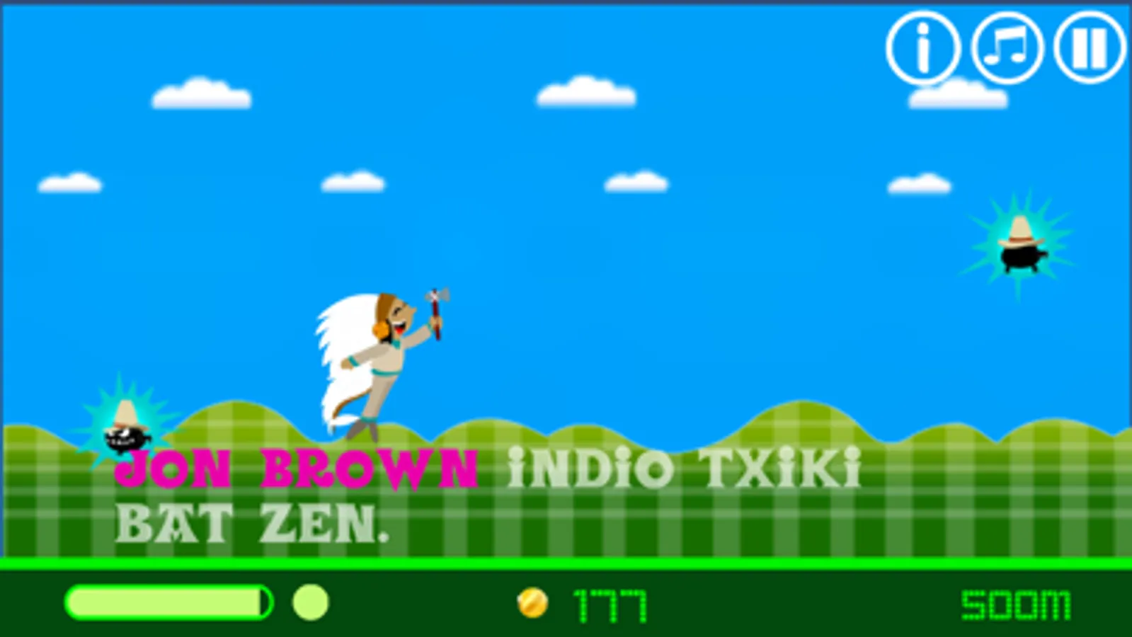 Egin hegan airetik Jon Braun indio txikiarekin. Cowboy elektrikoak saihestu eta ahalik eta medaila eta trofeo gehien harrapatu behar dituzu.