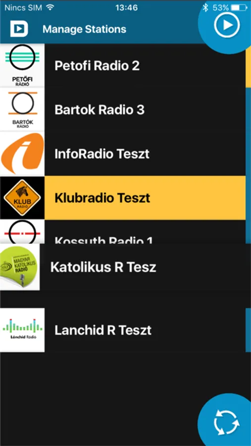 In the ‘Manage stations’ menu you can start a DAB scan by tapping on the refresh icon in the bottom right corner of the display.
