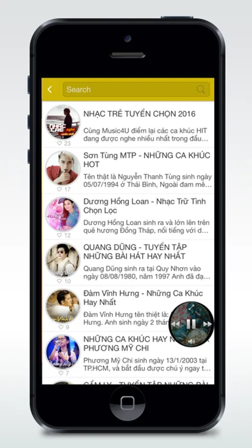 Ứng dụng tổng hợp nhiều bài hát hay về nhac tru tinh, nhac vang, nhac sen, bolero, hoa tau, nhac remix va mot so ca khuc hay ve nhac tre.