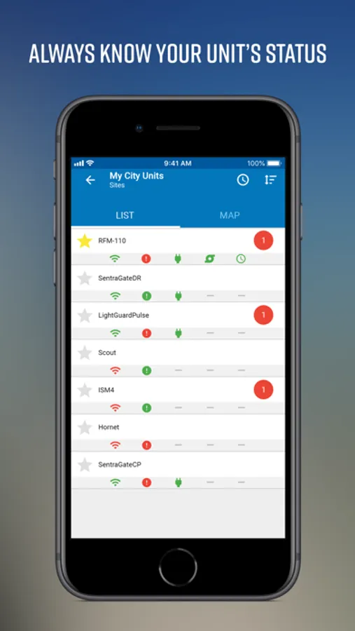 - Mapping feature shows sites in alarm and in normal condition