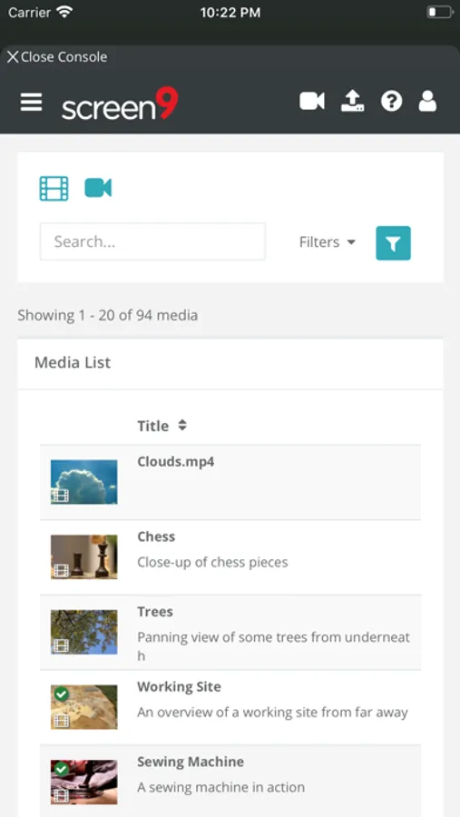 The Screen9 App enables you to record, upload, export videos from your iPhone or iPad directly to your Screen9 account. This enables you to easily generate video on-the-fly, upload pre-recorded video or export video directly to Screen9 from your other Apps. You can also access the Screen9 Console from within the App to manage your content. Use the same login credentials as in Screen9 Console. The App available in multiple languages.