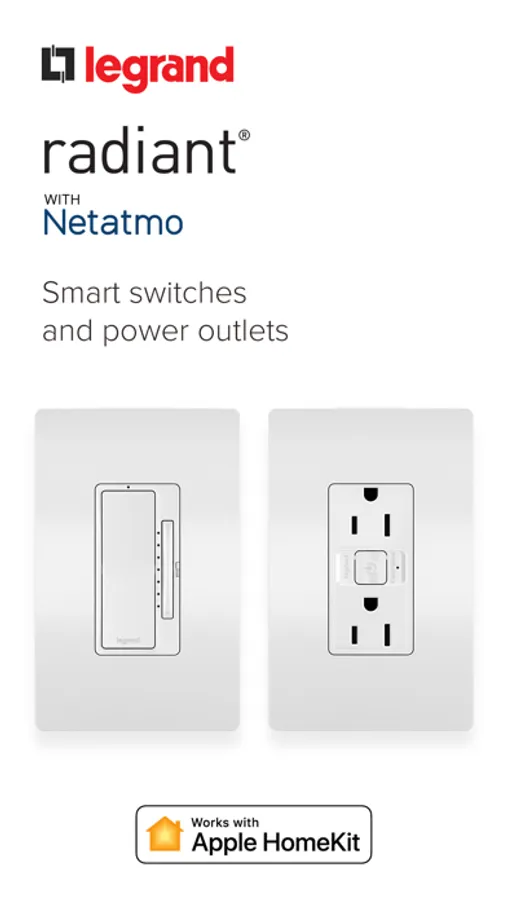 Start with a Smart Gateway, then replace existing switches, dimmers and outlets with adorne and radiant with Netatmo Smart Switches and Outlets for full control of your lights and power.