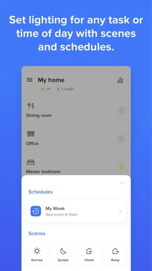 Schedule lights for your arrival, or dim lights to safely navigate the house at night.
