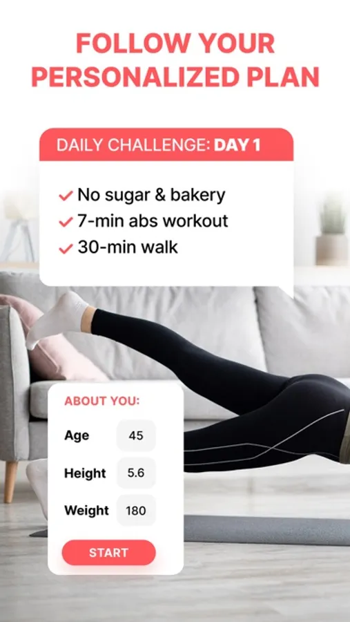- FOCUSING ON “PROBLEM ZONES”: You can concentrate on what you would like to improve first. Our smart algorithm will select the most effective exercises for your “problem zone” and create an individual program.