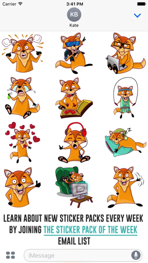 Buddy up with Darwin the Fox. In love? Happy? Angry? Sad? About to exercise or relax on the couch and watch tv? Darwin will help you express it with these 12 stickers.