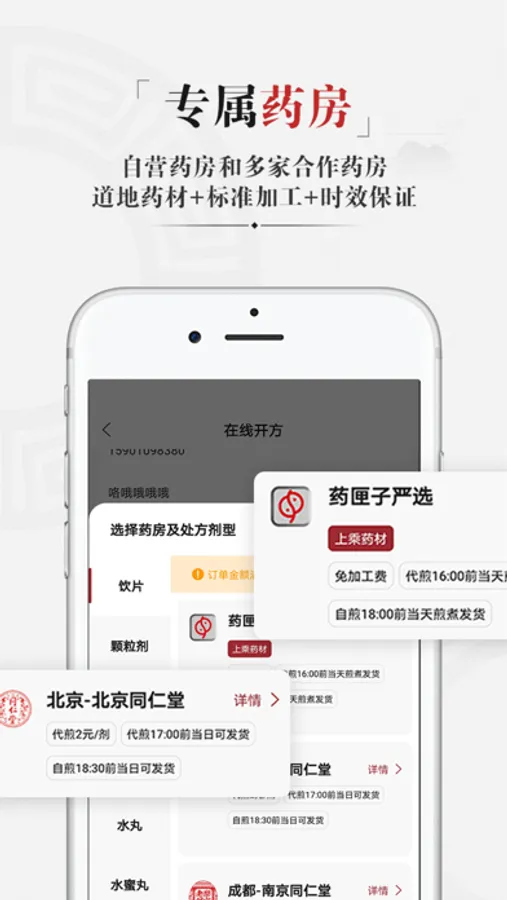 坚持选取最优质的道地药材,炮制工艺手法精细,采用古法用药标准,远高于药典要求,让好中医用上好中药!