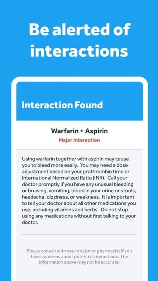 Stay safe and informed. We'll alert you if a newly-added medication has a potential interaction with your existing drug list, and we'll provide you with need-to-know info about your meds.