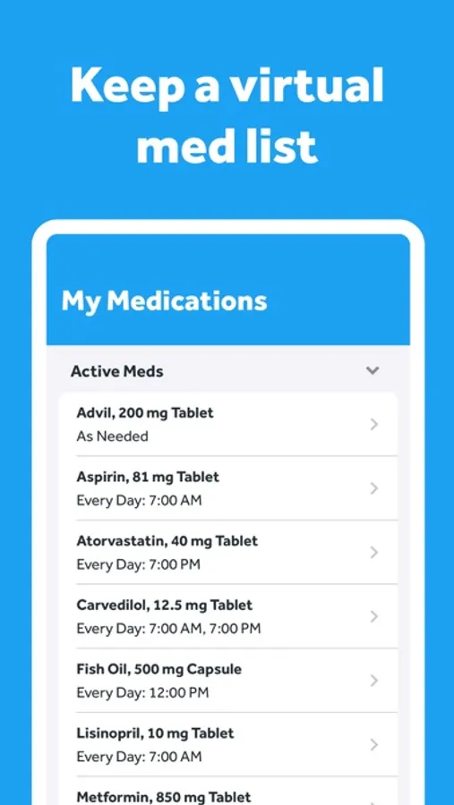 Medication schedules can be complex. Keep an up-to-date, accurate medication list on your mobile device at all times.