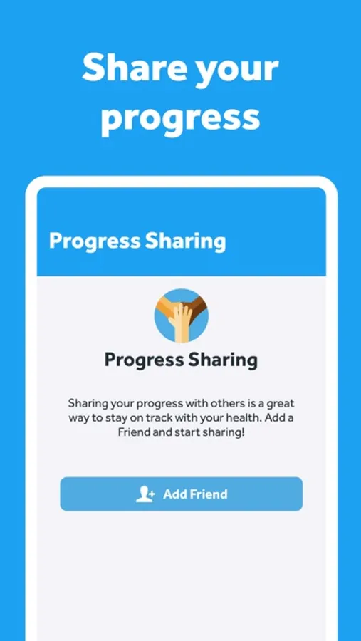 Managing your health is not a solo adventure! Add friends and set up progress sharing to keep your loved ones in the loop with your health.