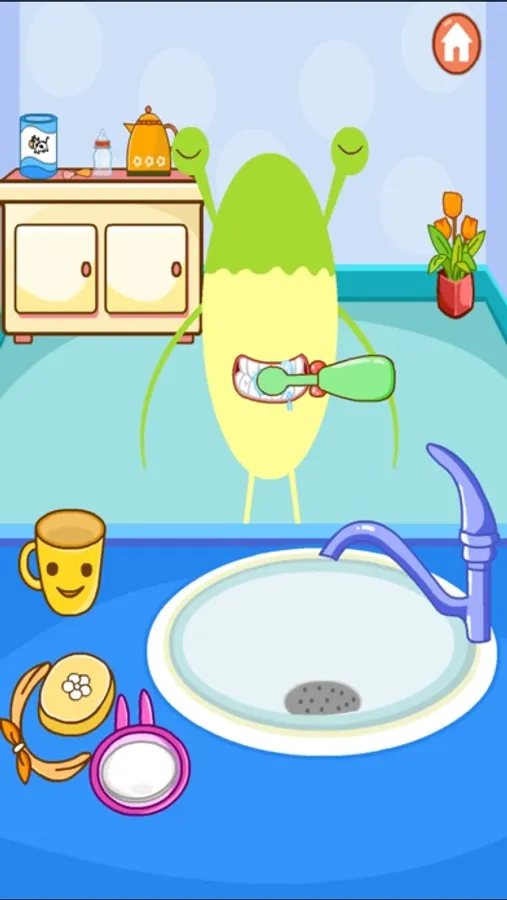 We will have a toothache if we do not brush our teeth every day. Children will change their bad habit after playing this mini-game. They will also wash their faces and have milk by themselves.