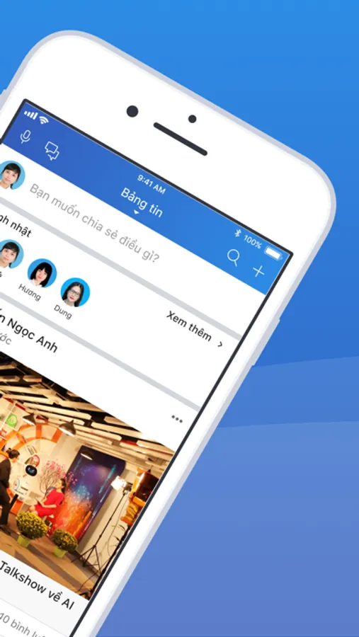 • Trao đổi thông tin trong doanh nghiệp: xem tin tức, tài liệu được chia sẻ qua Bảng tin của phần mềm AMIS Mobile; đăng chia sẻ, sáng kiến; bày tỏ quan điểm, suy nghĩ của bản thân