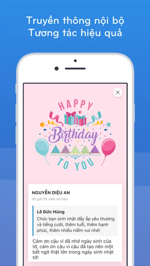 • Nhận được thông báo khi có thành viên mới gia nhập công ty, nhân viên sắp tới ngày sinh nhật, nhân viên được bổ nhiệm,… để gửi tin nhắn, email chúc mừng