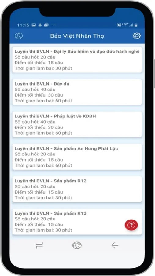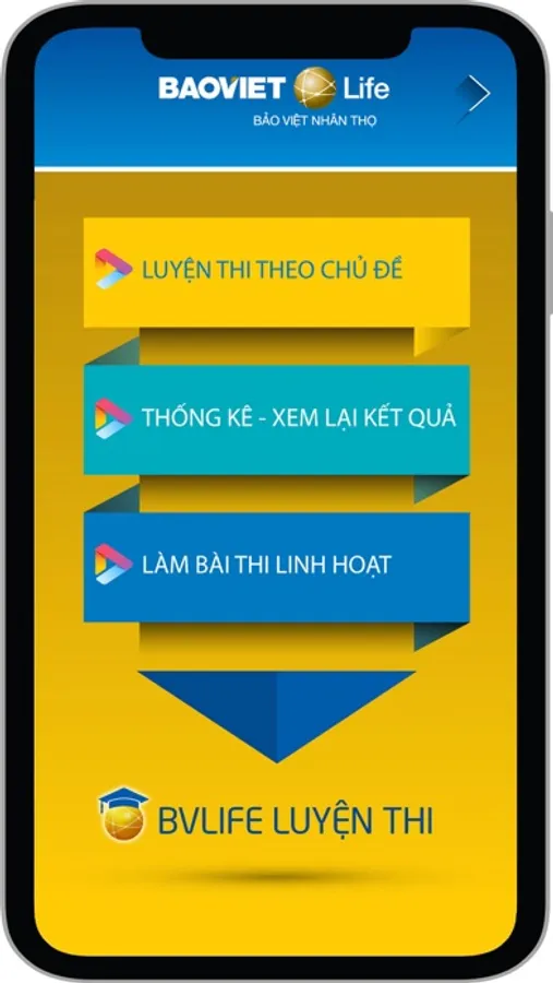 Ứng dụng thi lấy chứng chỉ hành nghề Bảo hiểm của Bảo Việt Nhân Thọ.