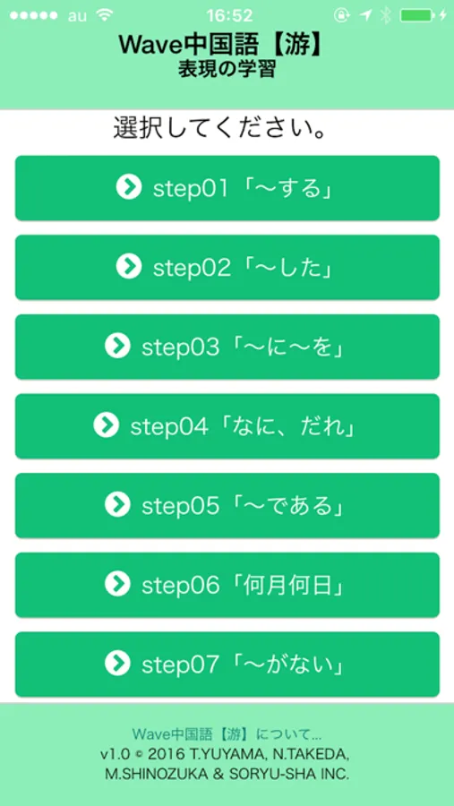 Wave中国語【游】は、中国語学習のかなめとなる声調学習を基礎に、効果的・効率的中国語音声教育の推進を目的に開発された学習教材です。 模範音声とともに、学習者の発音の高低、 緩急、強弱を瞬時に曲線グラフ化した視覚情報、3段階の目安による評価を提供して、自律的な声調の習得を促します。 学習者は、「基礎発音」と学習項目、学習進度によって練習する単語と文章を選択する「表現の学習」を選択できます (練習用教材は2018年3月現在、「基礎発音」778個、「表現の学習」355個)。