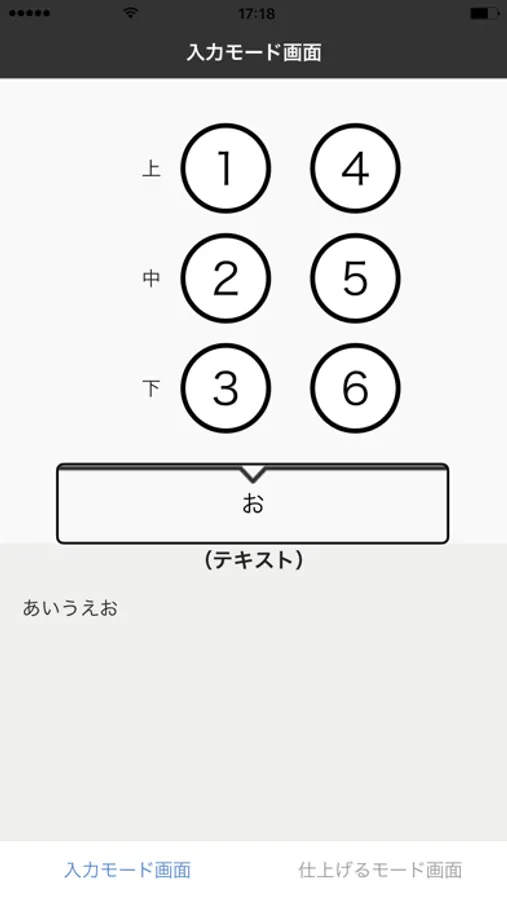 2 3 の点を入力すると、ひらがな、カタカナ、英字、数字が切り替わります。