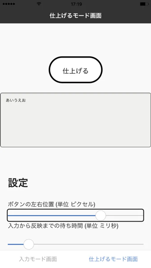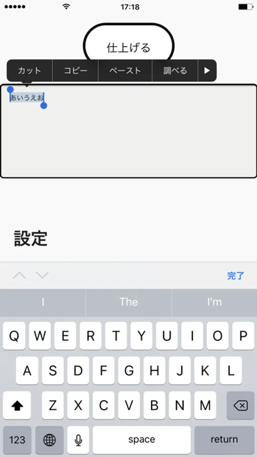 「仕上げる」ボタンをダブルタップすると、書いた文章がテキストフィールドに入って全文選択の状態になります。