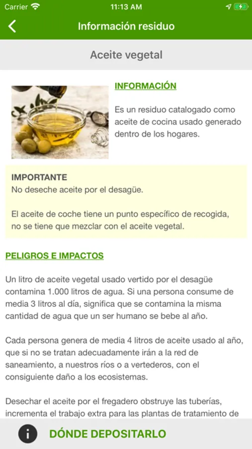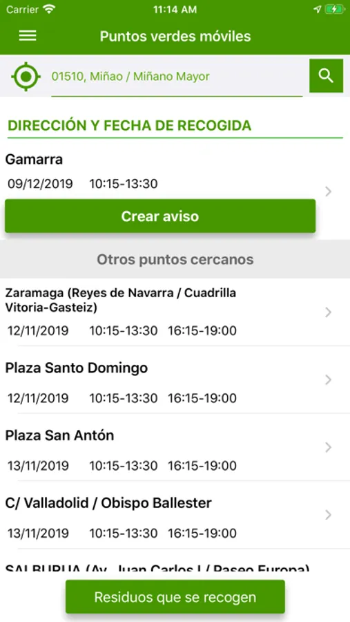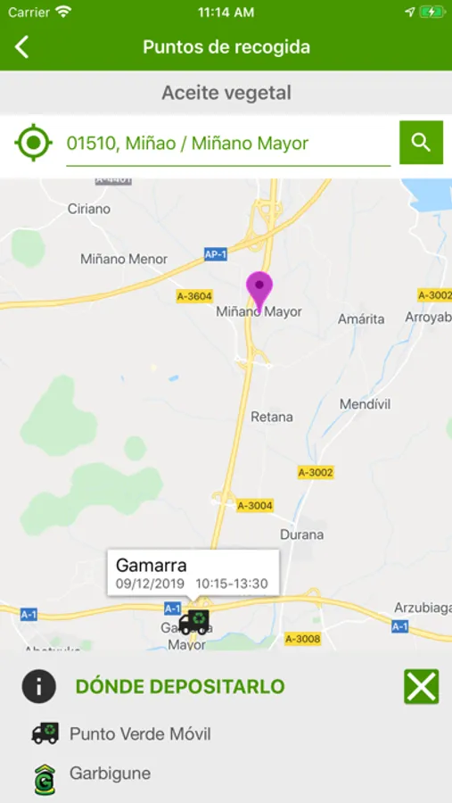 El usuario solo debe introducir la consulta del residuo que tiene dudas de cómo y dónde depositarlo, y la aplicación le da información del residuo y la localización en un mapa de los lugares de las diferentes opciones que existen más cercanas a su localización GPS del móvil o la dirección que se haya introducido anteriormente, además aporta otra información de interés de estos lugares, como el teléfono, email, dirección, especificaciones, etc. Por otro lado, esta aplicación comunica las novedades medioambientales en Álava actuales y alertas del punto verde móvil y otras si el usuario así lo ha solicitado.