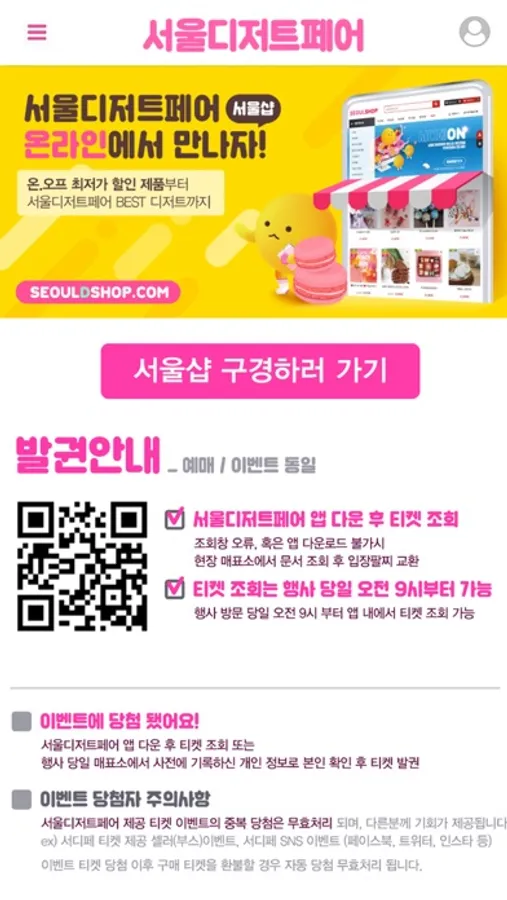 ; 서울디저트페어 사전 예매자들의 자신의 예매여부, 예매내역 등을 앱에서 직접 확인 할 수 있습니다.