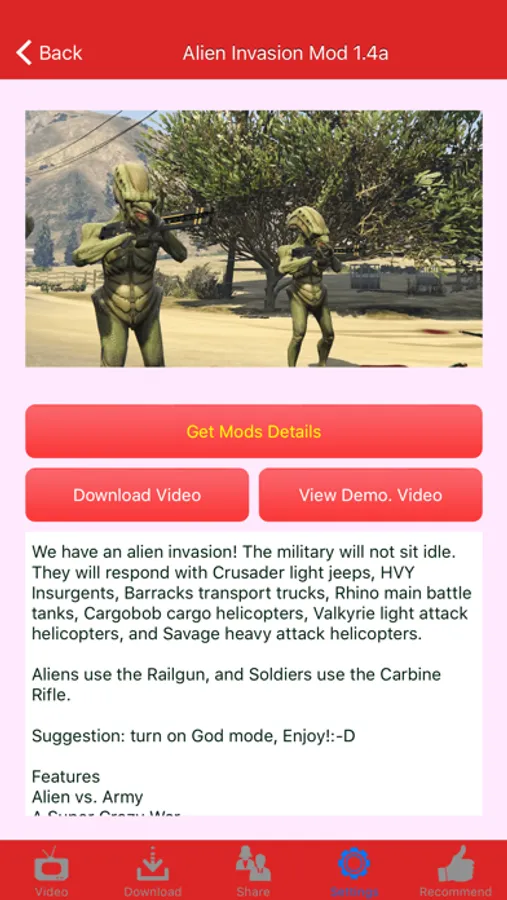 This app contains Mods and funny videos of 【GTA 5】, and all the mods and videos can be downloaded or streamed from our server without further charge or periodic subscription. With the mods and video screenshots, with descriptions, you will be able to find out whether the time and money needed is worth to backup the game, download and install the mods.