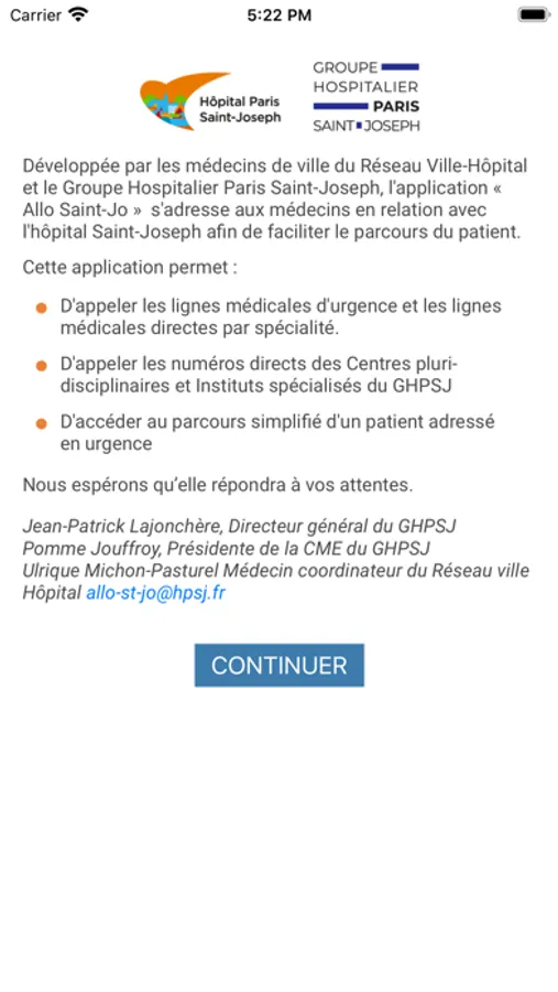 Développée par le Groupe Hospitalier Paris Saint-Joseph, l’application « Allo St Jo » s’adresse plus particulièrement aux médecins de ville en relation avec l’hôpital Saint-Joseph afin de faciliter le parcours du patient.
