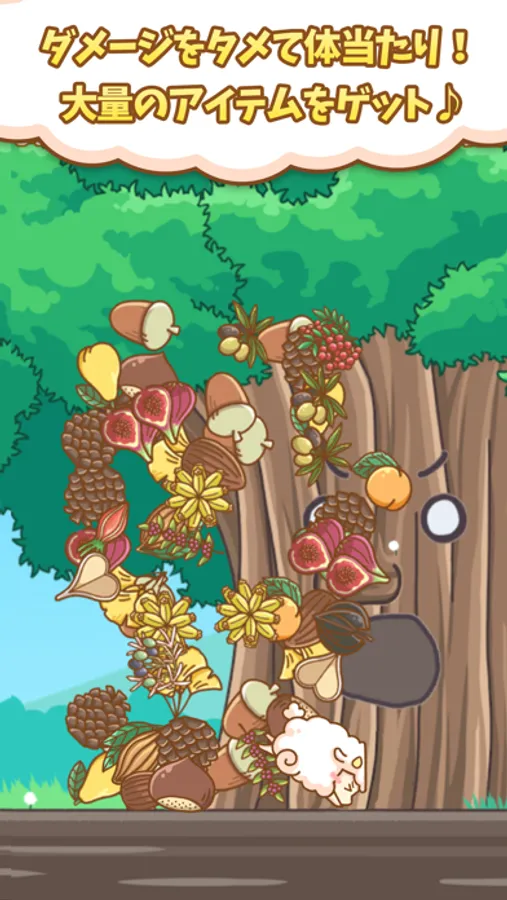 -タップを長押しして突進ゲージをタメて樹に突進しよう!