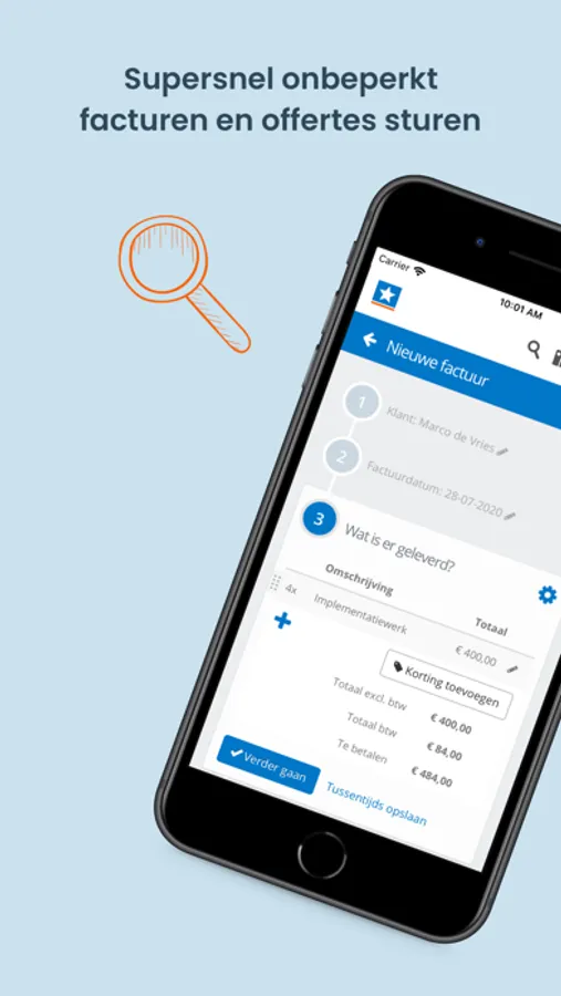 - Razendsnel en onbeperkt facturen en offertes versturen incl. betaallink