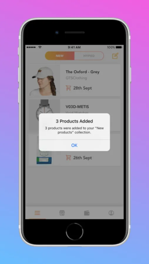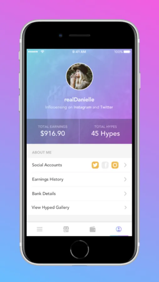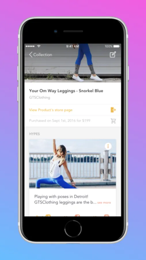*Choose a product from your list of purchases to promote, snap a picture, add descriptions/hashtags and choose which social media accounts you want to "Hype" to. Inflooense will automatically generate a unique link to you, directing anyone who clicks directly to the product you are promoting!