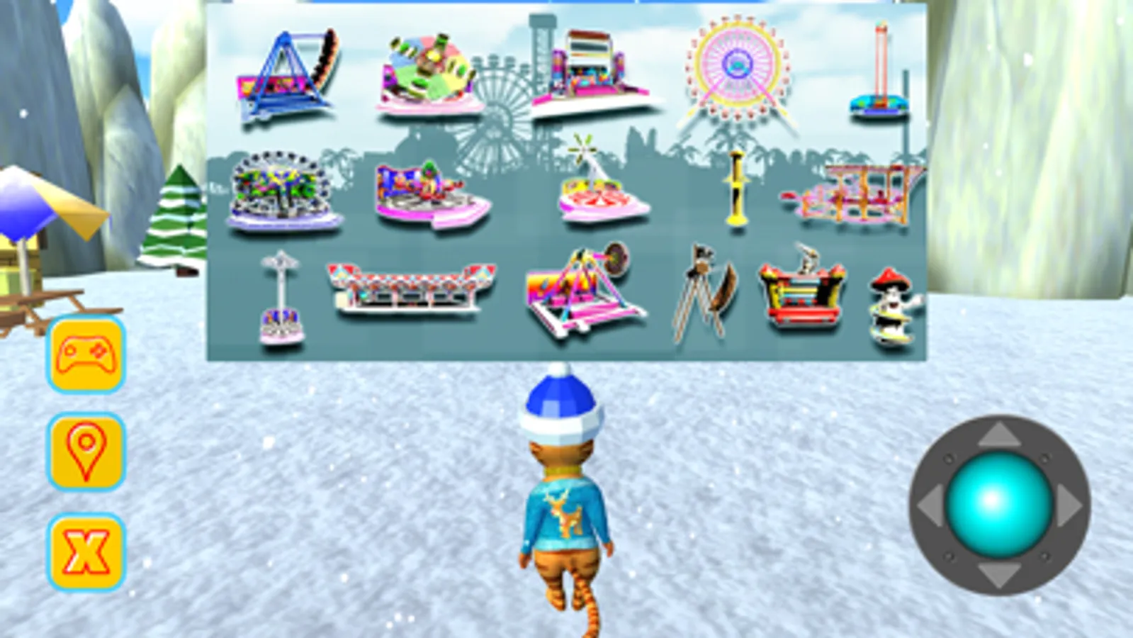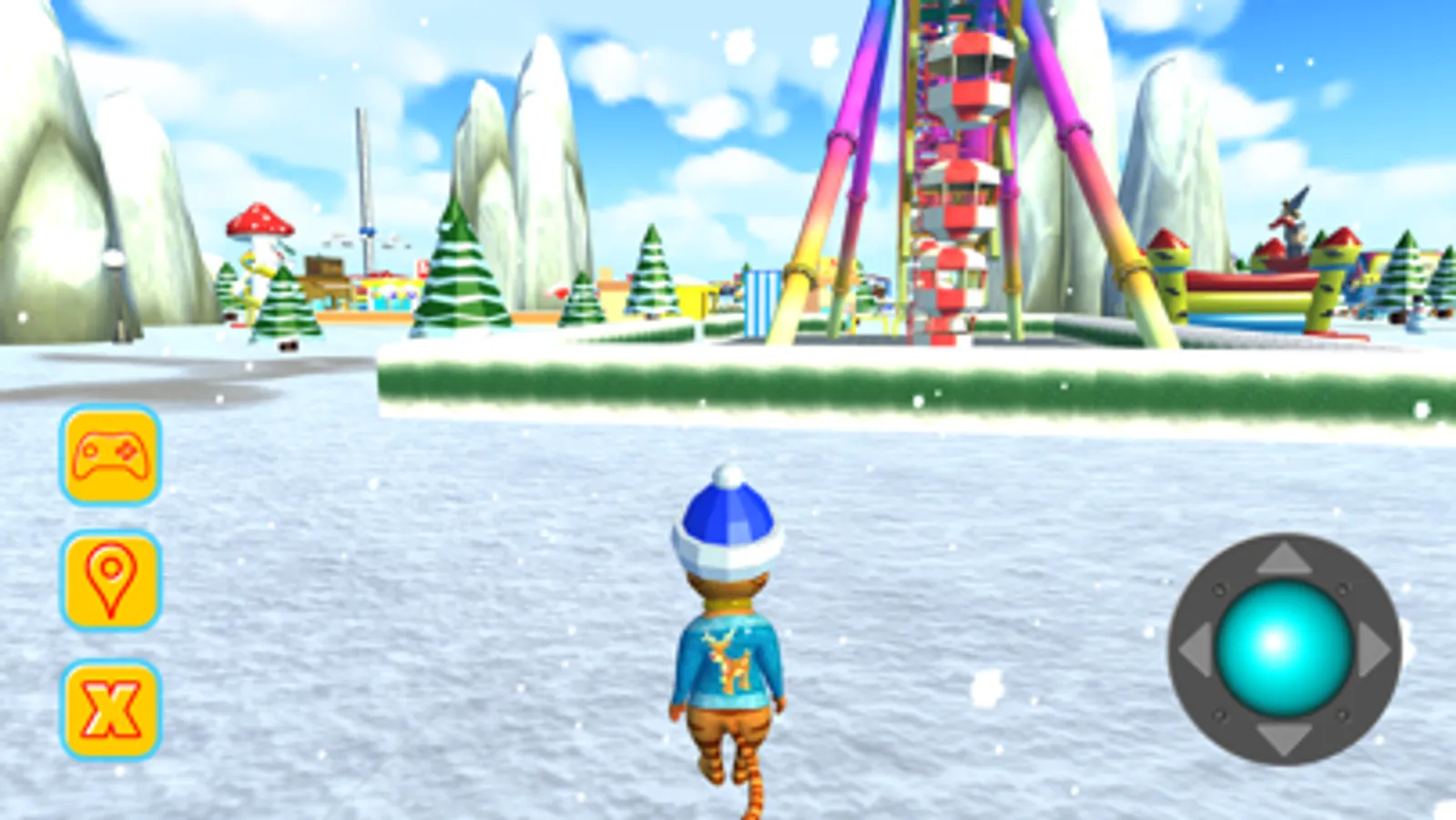 Join Leo the cat at the winter theme park and check out all the marvelous attractions.