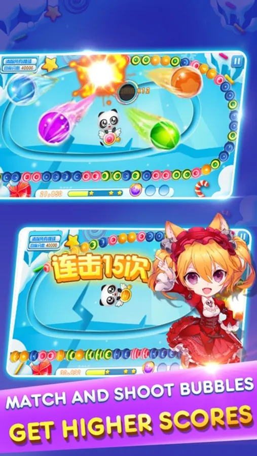 - Shoot bubbles to match three or more of the same color