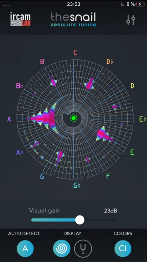 Similar to the human cochlea where the different frequencies are split-up and analyzed, The Snail for iOS uses a spiral grid to visualize root notes and overtones of any incoming sound with utmost precision. The Snail is based on recently developed technology making instrument tuning easy and audio analysis music-oriented and fun to watch.