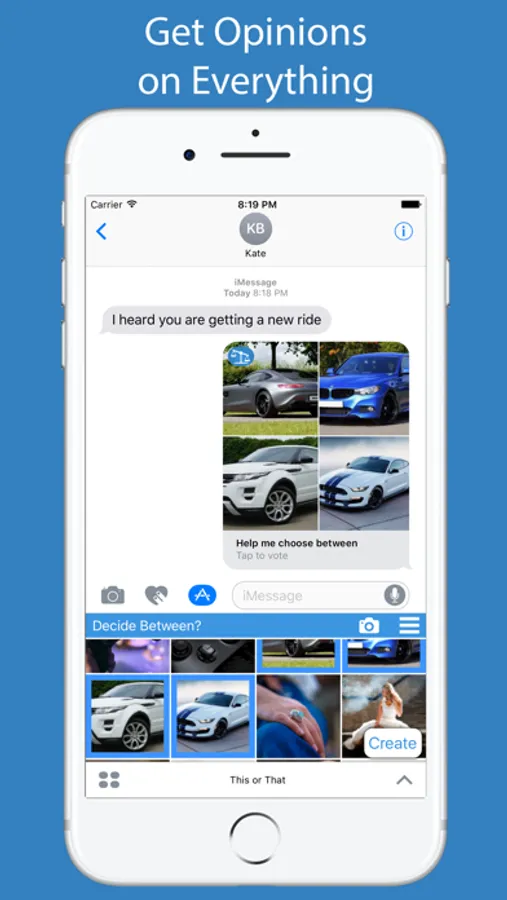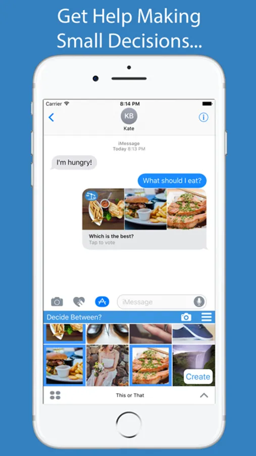 Having trouble making decisions? No worries, let This or That! help you. Whether its deciding which clothes to wear or deciding where to eat for lunch, This or That! has your back. Send images of your dilemma to your friends and let them vote for the best one.