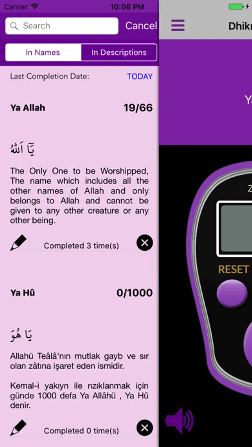 Dhikr Counter Platinum automatically records how many times you have completed the dhikr and the date you last completed the dhikr, for each dhikr in the list.So you can easily keep track of your azkar (athkaar, athkar, adhkaar, adhkar, أذكار ).The dhikr counter app also remembers the last number that you were on while performing the dhikr so that you can continue from where you left off when you reopen the app.
