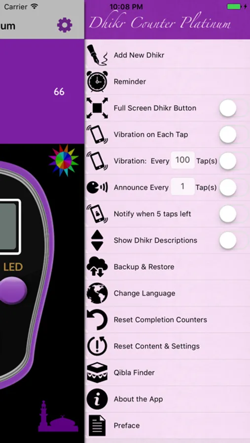Dhikr Counter Platinum is an islamic digital counter application with a great user friendly interface that allows the users to enjoy performing their daily dhikr ( azkar ) and tasbih ( tasbeeh ).