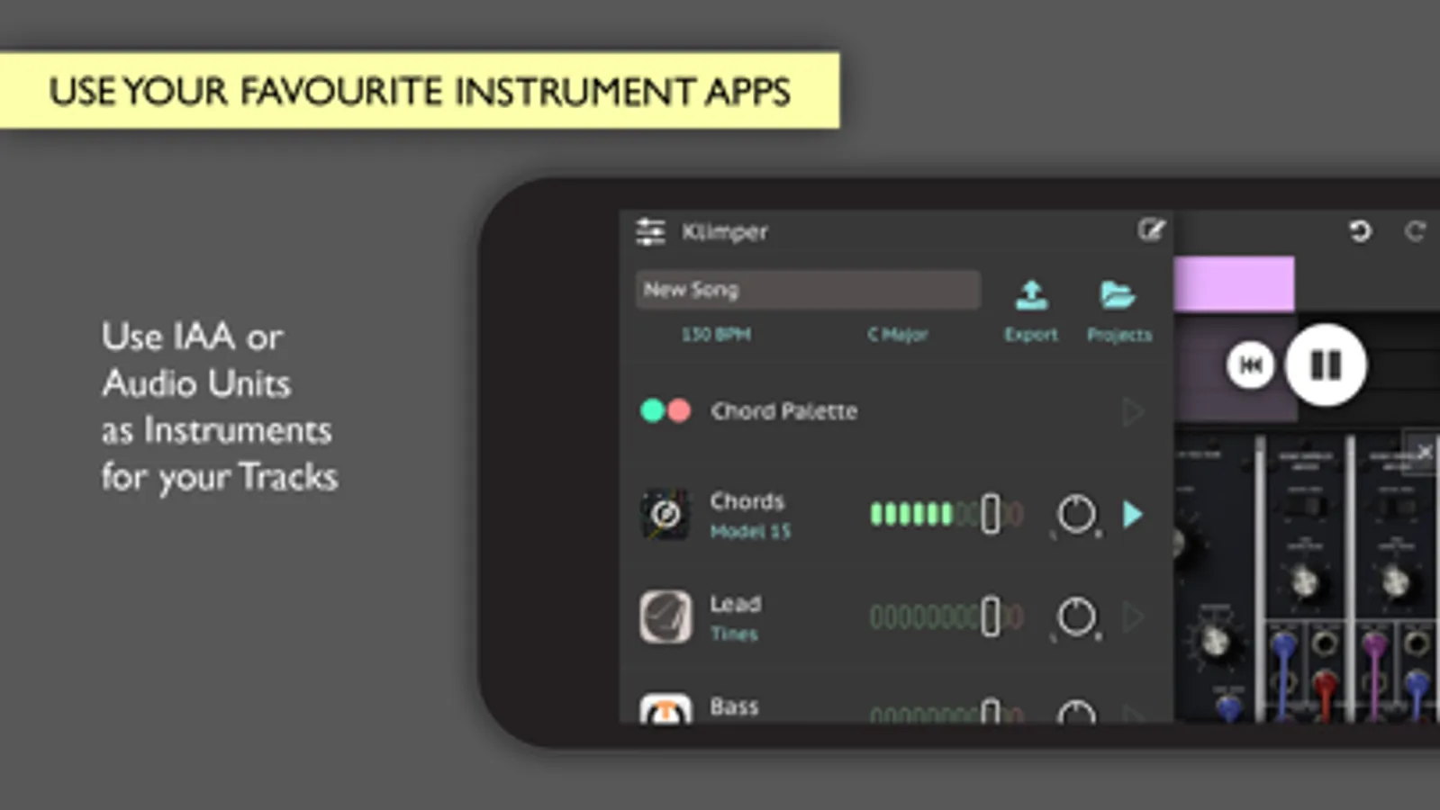 It's just more fun to explore and create with those awesome Instrument Apps that are available in the App Store: Klimper supports Inter-App-Audio Instruments like Animoog and Model 15 as well as Audio Unit Instruments like Ripplemaker and Mersenne.