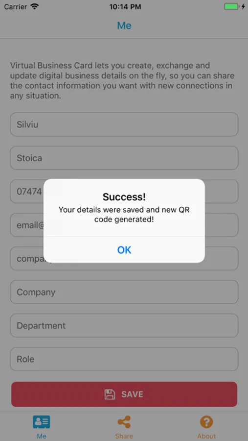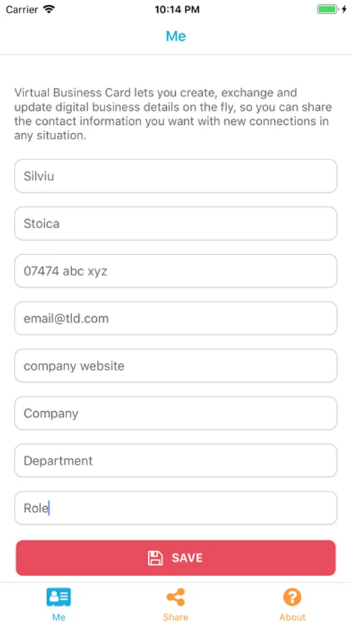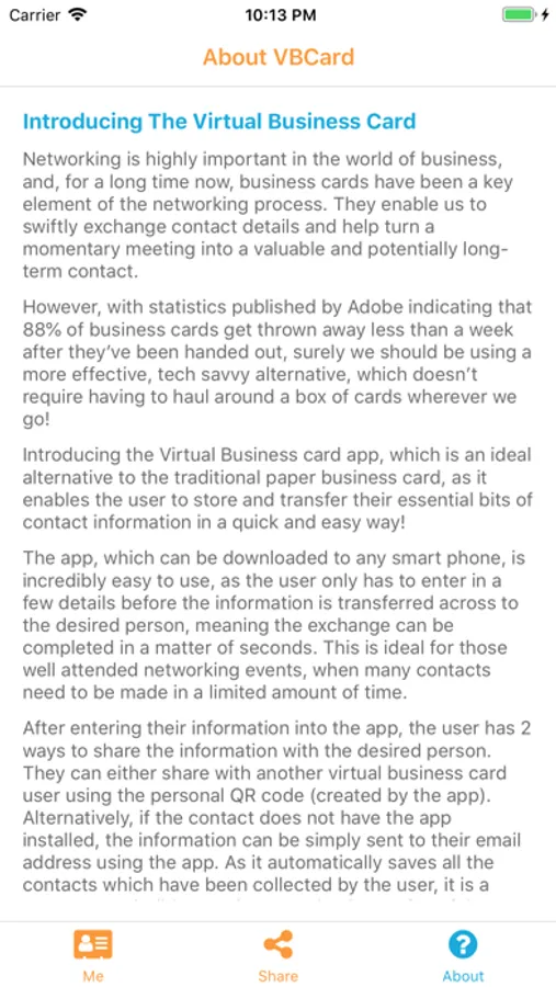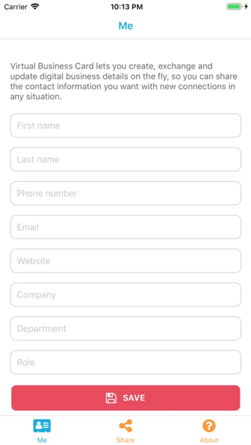 Virtual Business Card lets you create, exchange and update digital business details on the fly, so you can share the contact information you want with new connections in any situation.