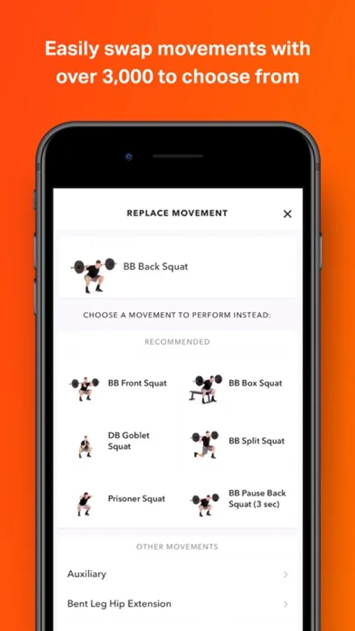Flexibility — Customize your workouts with easy exercise swaps. Search our library of 3,000+ movements, each with HD video demonstrations and step-by-step instructions.