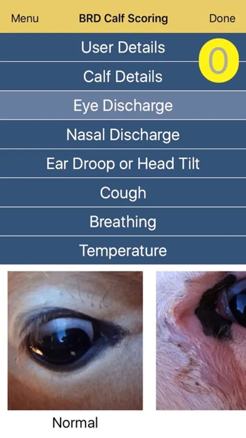 The app can be used as an aid to the herd veterinarian and producer in the prevention and control of pneumonia in pre-weaned dairy calves under the Veterinary Client Patient Relationship. Calves can be scored to determine their CA BRD score status and results stored in a searchable database on the user’s mobile device.