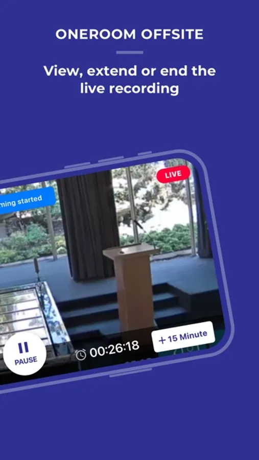 The OneRoom Remote App allows you to view, extend or end the live recording using your smartphone - just like a remote control!