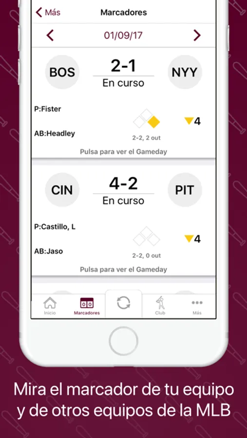 • Marcadores de los partidos.