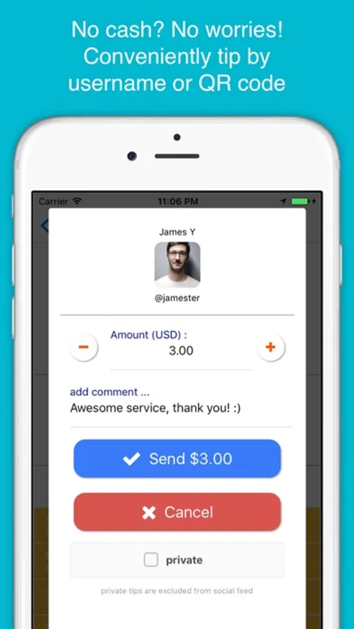 With TipGenie, tipping is as easy as leaving a nice note with your username or QR code, so that your customer can easily find and tip you for quality service.