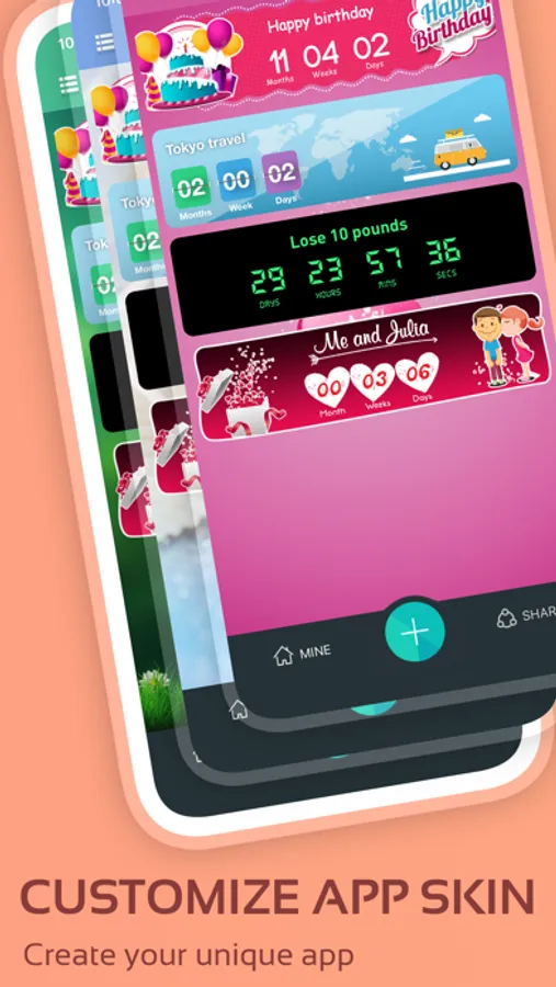 Countdown widget® 321 is designed to include many widget styles, which are suitable for any event, or any of your personal styles. They’re very easy to customize, making your phone become eye-catching, impressive, and unique. Countdown widget® 321, from 2016, has helped thousands of people manage their life’s important events.