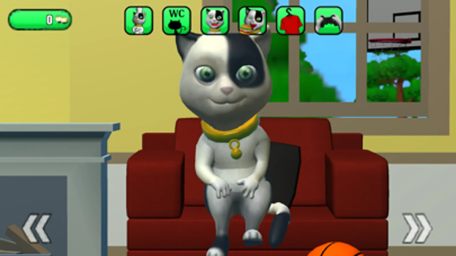 Meet Max the talking kitten. Max is a fun virtual pet that responds to your touch and repeats everything you say with his own hilarious voice. You can cuddle him, poke him pull his ears, play with his collar and much more. Like every little cat max is full of energy and loves to play all sorts of games but what he loves the most is soccer and basketball and he can barely wait to play them with you!